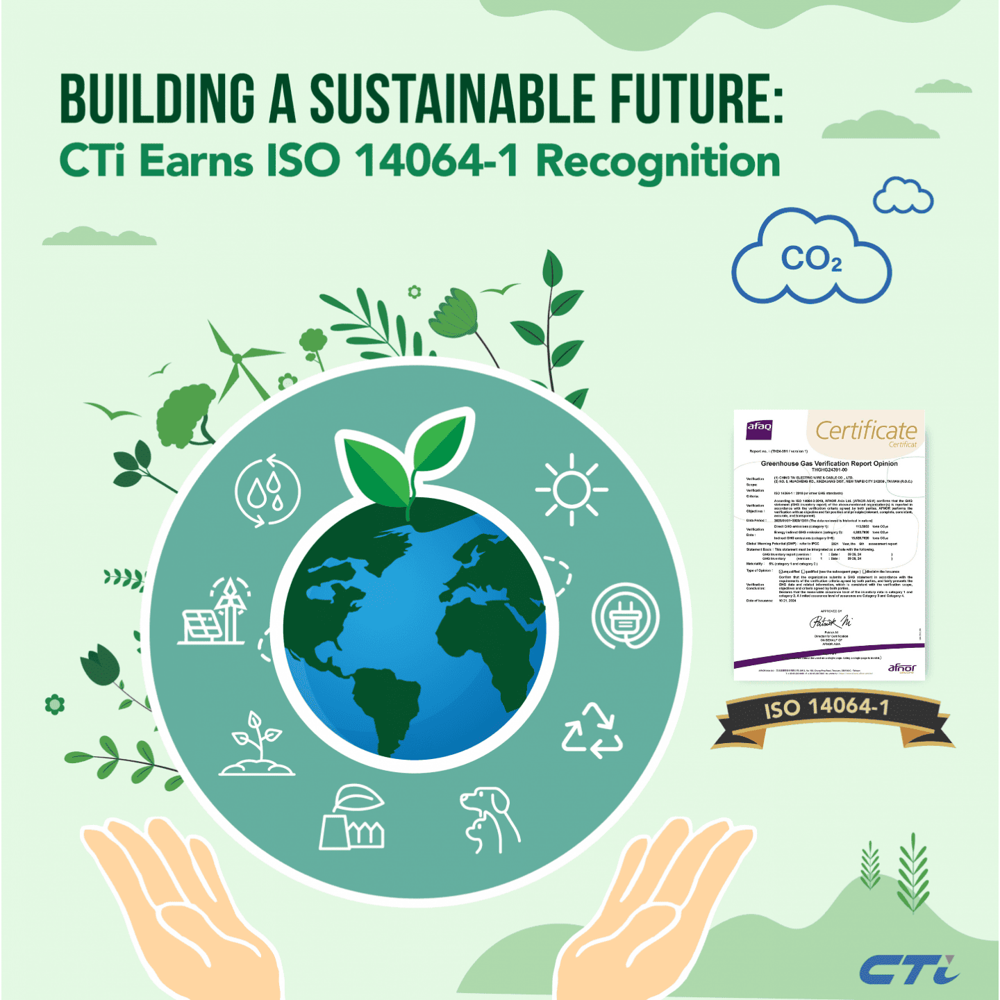 At CTi, sustainability is more than just a buzzword, it's a commitment. We're proud to announce that we have achieved qualification for ISO 14064-1 in Jun 2025, the international standard for greenhouse gas emissions quantification and reporting.