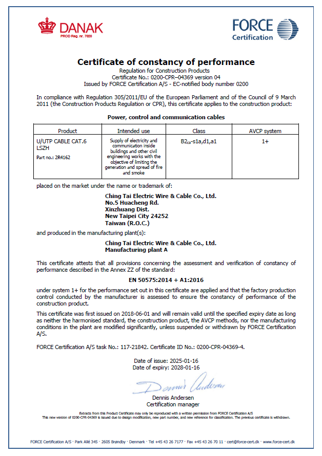 CPR AVCP system 3 : Reaction to fire classification: Dca-s2,d2,a1;Dca-s1,d1,a1;Eca AVCP system 1+: Reaction to fire classification: B2ca-s1a,d1,a1;Cca-s1a,d1,a1 |