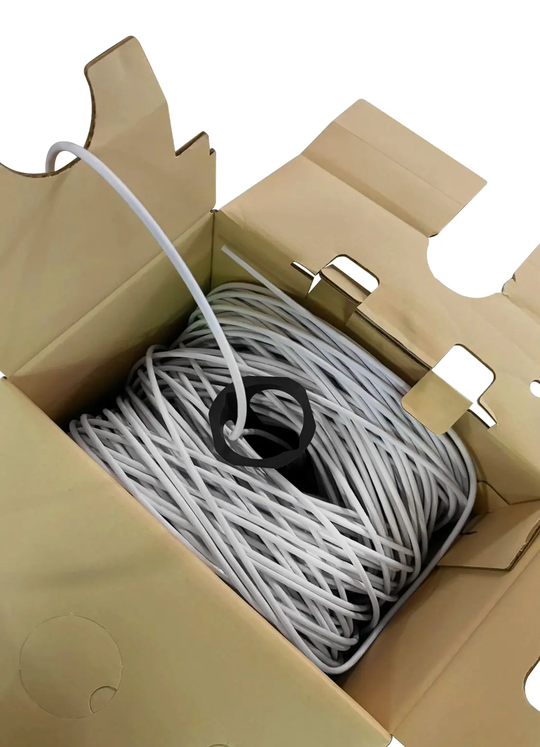 But now, you can enjoy a tangle-free and easy cable drawing experience with Reelex box. Thanks to Reelex's special coiling method and box design, the Cat.6A cable feeds out smoothly from the center without getting twisted, tangled, or caught - and there's no need for extra tools like payoff stands or brakes.