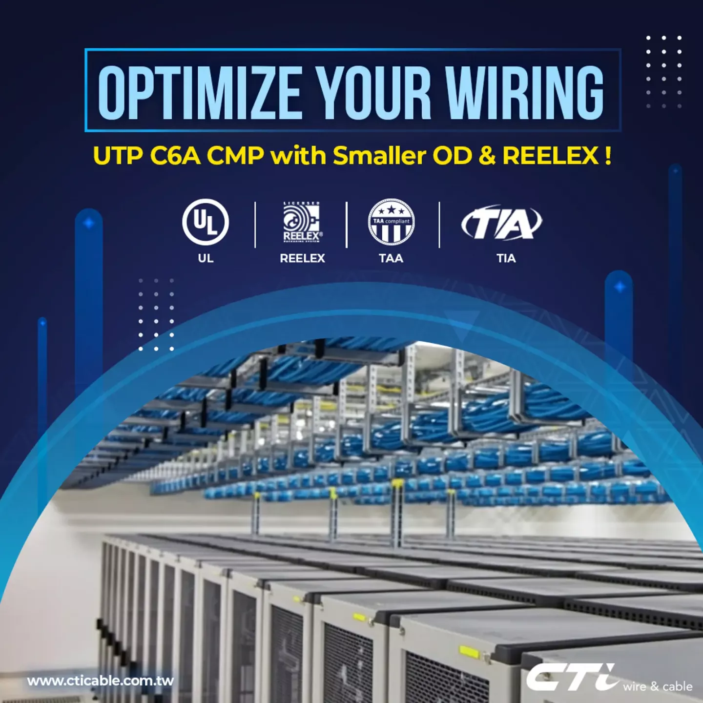 CTi's UTP C6A CMP cable brings you the perfect combination of performance, convenience, and efficiency. From easier handling to hassle-free deployment with Reelex packaging, this is the cable that makes your life faster and simpler. More importantly, CTi's UTP C6A CMP Cable is UL, ETL verified, which ensuring compliency. Do not hesitate to reach out to us if you want to learn more or need some samples for further evaluation.